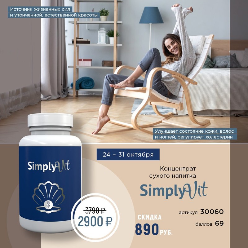 Концентрат напитка сухой СимплиВит на основе жемчужной пудры содержит богатый витаминный комплекс с высокой биодоступностью.