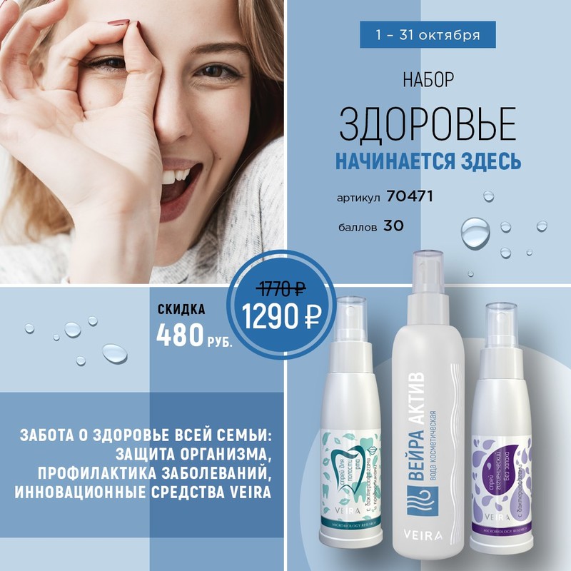 🍃 Весь октябрь набор из трех средств со скидкой 27 %! Приобретайте по цене 1 290 руб. вместо 1 770 руб., пусть эта осень будет здоровой вместе с VEIRA!